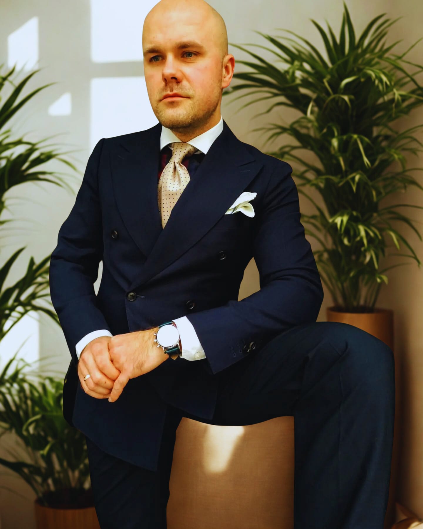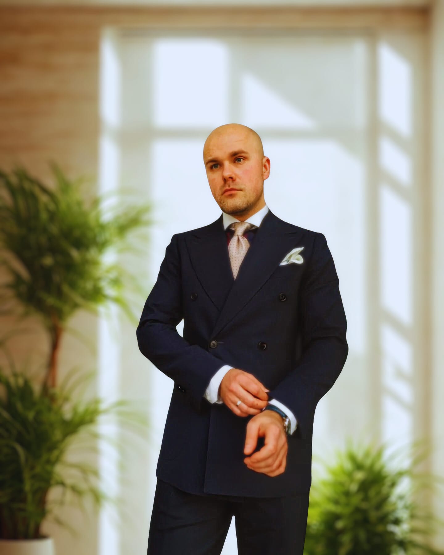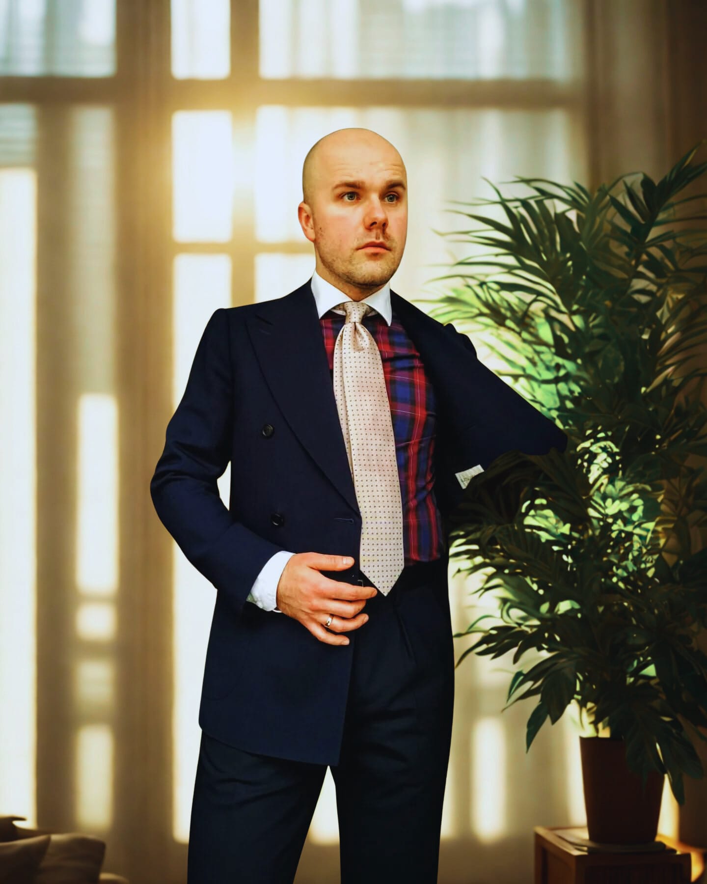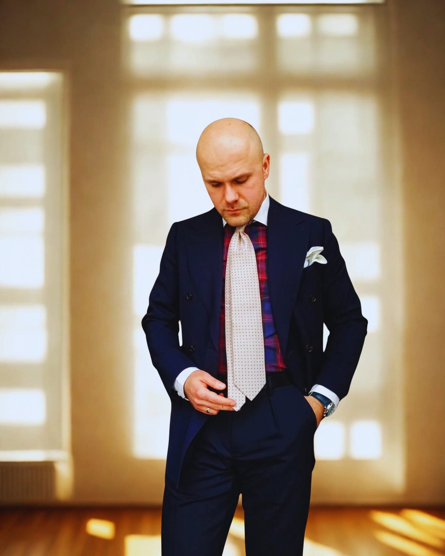 Pair it with a double-breasted navy suit, and you’re entering rare air. Not just because the DB cut takes confidence to wear — but because few men today know what to do with that much presence. It commands without yelling. It leads without posturing.