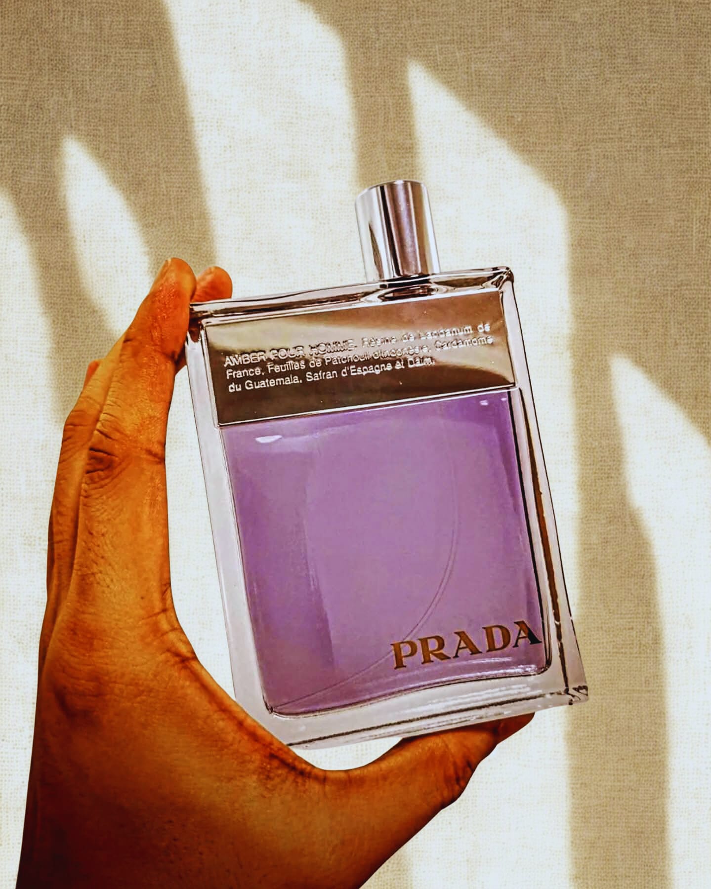 The same goes for the bottle of Prada Amber Pour Homme. Soft lavender juice in a brutalist glass rectangle. Masculine, but not aggressive. The kind of scent that says, “I know who I am, and no, I’m not going to explain it to you.” It sat perfectly within the energy of these fits—contrasts, contradictions, and little quiet explosions of identity.