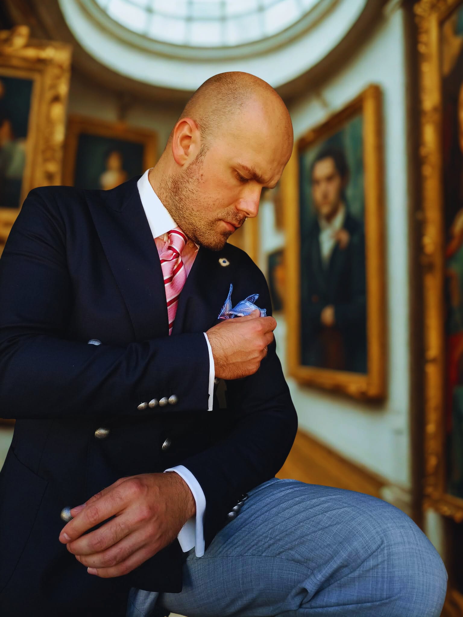 The tie is knotted, the jacket shoulders sharpen, the silk square blooms from the breast pocket. Suddenly, you’re no longer just the man who appreciates art — you’re the man who could have commissioned it. The transformation isn’t about impressing the room. It’s about setting your own tempo.