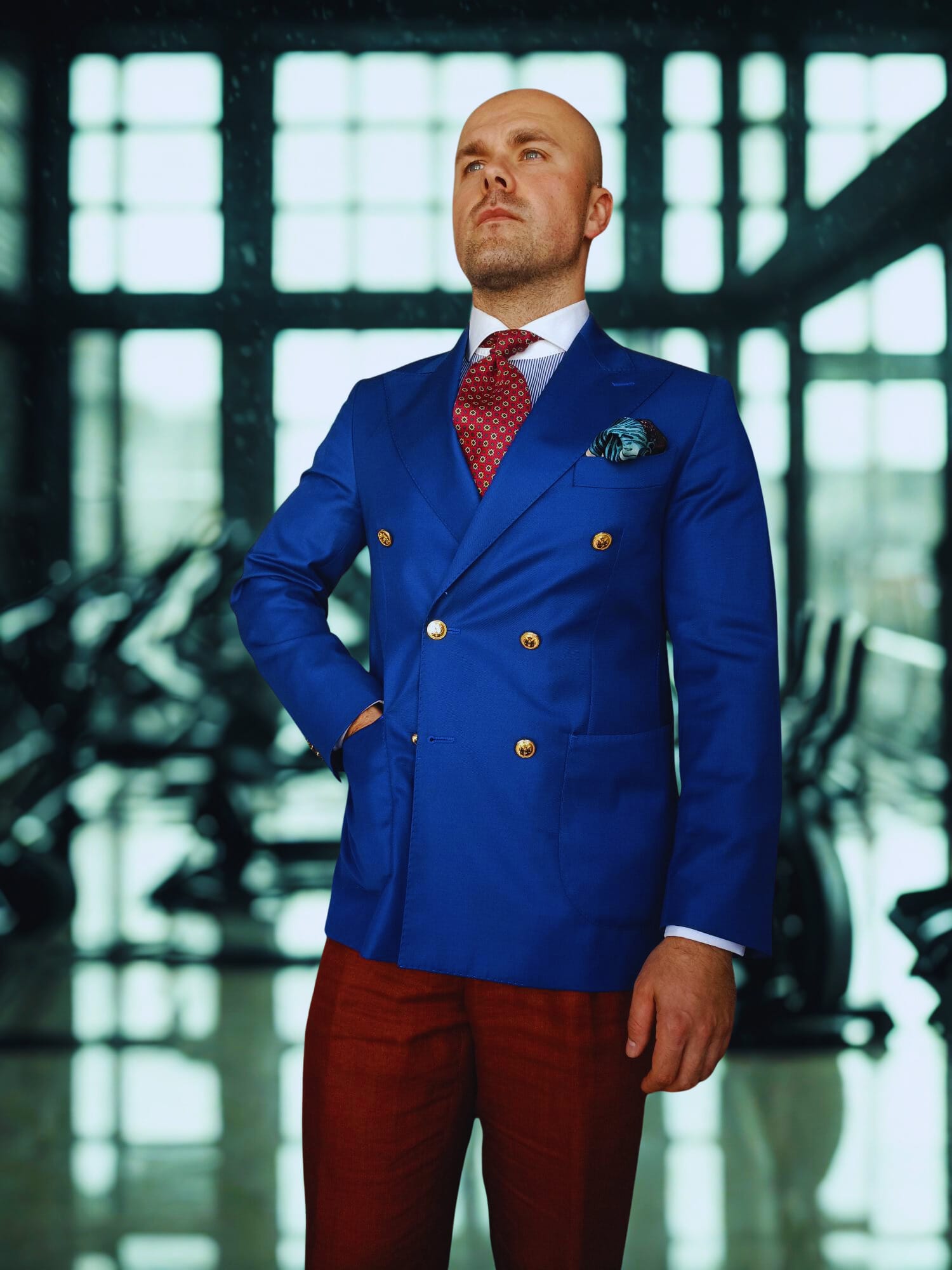 Just like in fitness, there’s progressive overload in style. Add a bold tie here. Swap standard leather for suede loafers. Introduce color blocking, the way you’d stack extra plates. Each move takes confidence, but also control. Overdo it, and you’re that guy with chicken legs and a monster chest. Balance is king.