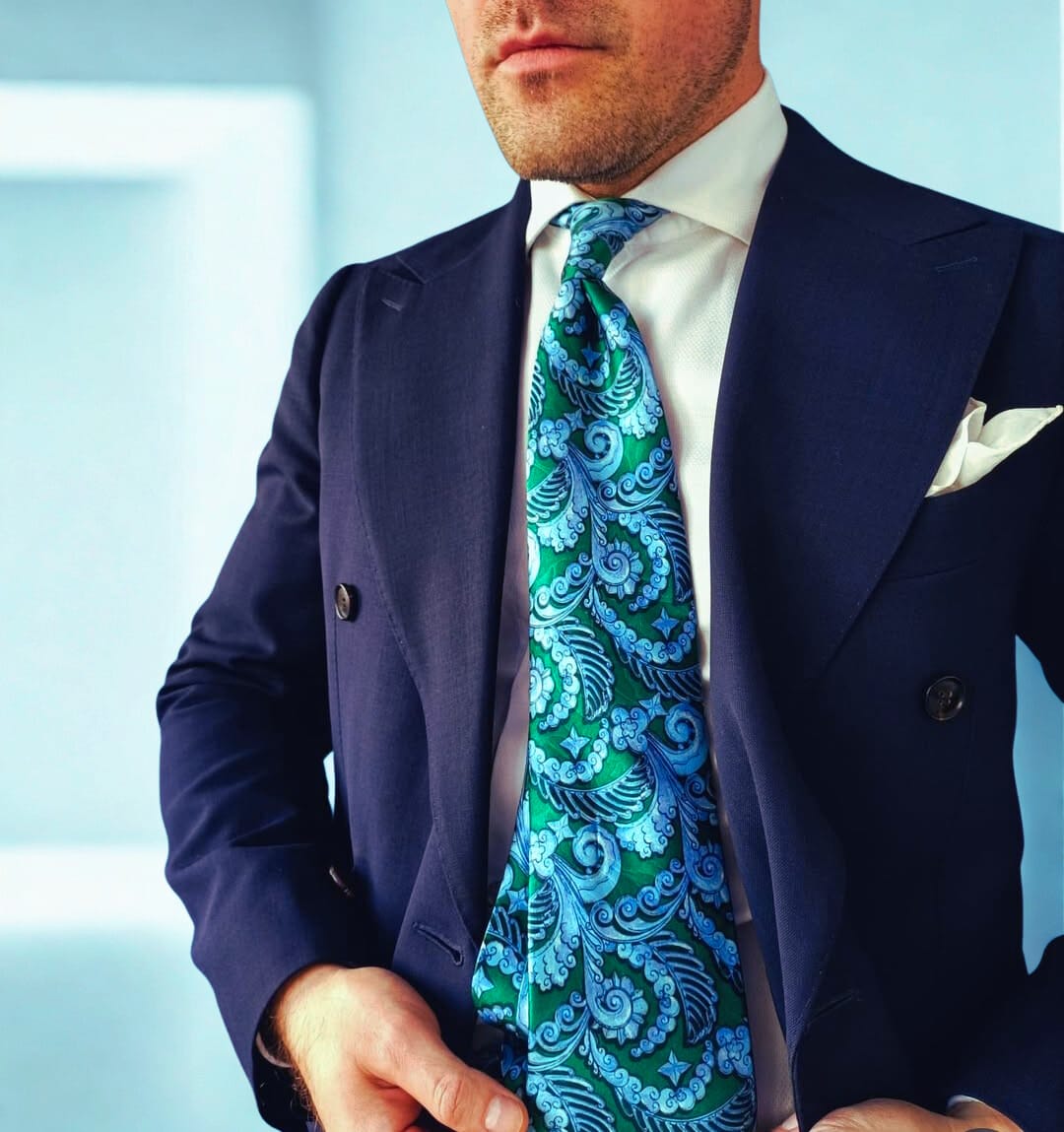 I found it in an online thrift store. A Lanvin tie with a print that looked like Art Nouveau on acid. Seaweed swirls, cerulean blue and deep emerald green, curls and currents dancing with no shame. It was one of the first ties I ever bought. It cost next to nothing. But it made me feel like I owned the room.